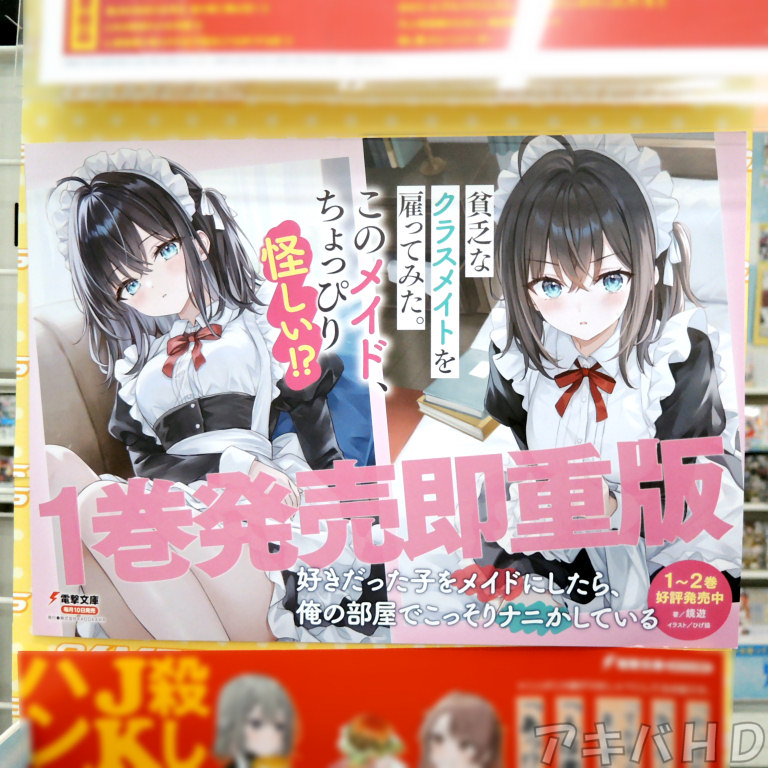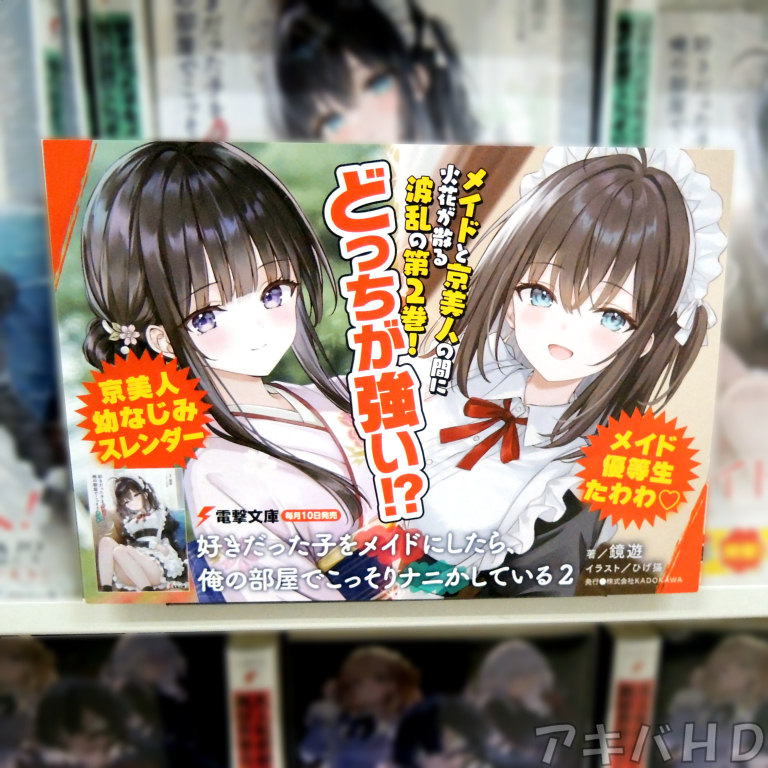 電撃文庫「好きだった子をメイドにしたら、俺の部屋でこっそりナニかしている」2巻(著:鏡遊氏、イラスト:ひげ猫氏)が9月10日に発売。アニメイトやゲーマーズに販促POPがあった。