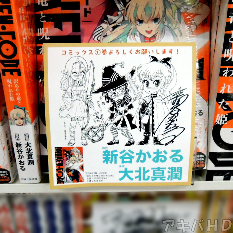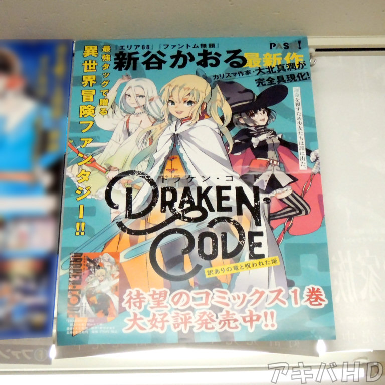 「DRAKEN・CODE 訳ありの竜と呪われた姫」1巻(漫画:大北真潤氏、原作:新谷かおる氏)が9月26日に発売。アニメイトに販促POPやポスターがあった。