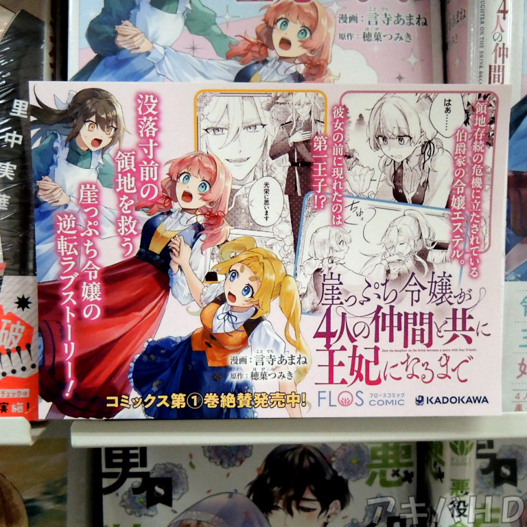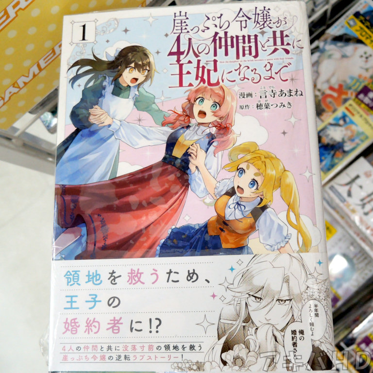 「崖っぷち令嬢が4人の仲間と共に王妃になるまで」1巻(漫画:言寺あまね氏、原作:穂菓つみき氏)が9月17日に発売。アニメイトに販促POP「没落寸前の領地を救う崖っぷち令嬢の逆転ラブストーリー!」