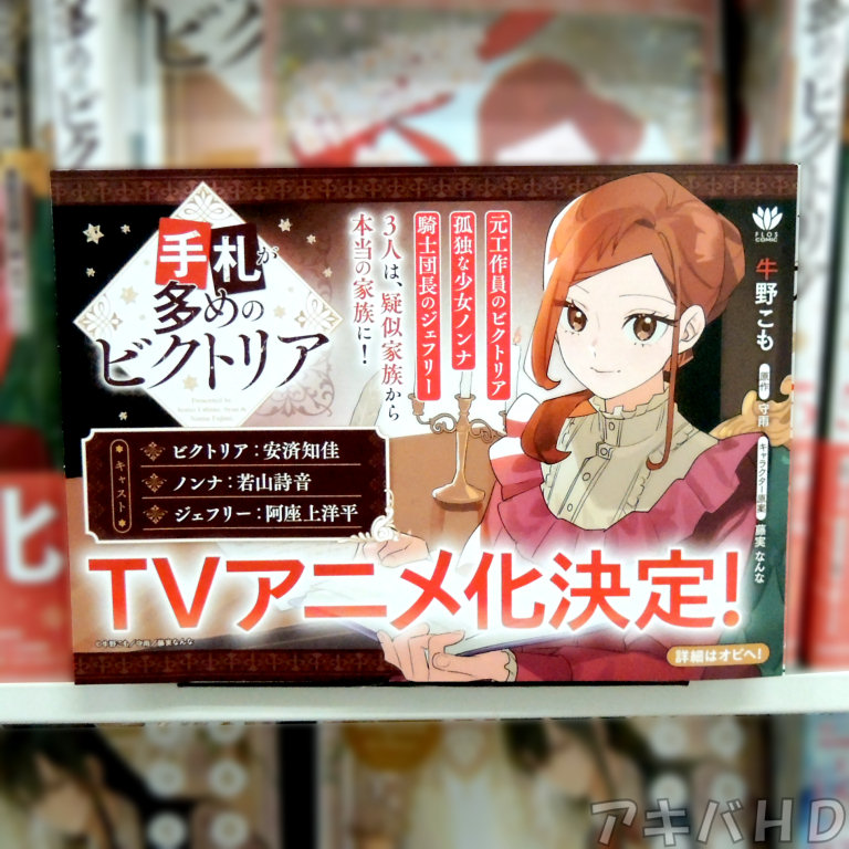 TVアニメ化が決定しているMFブックス原作「手札が多めのビクトリア」5巻(漫画:牛野こも氏、原作:守雨氏、キャラクター原案:藤実なんな氏)が9月17日に発売。アニメイトに販促POP「3人は、疑似家族から本当の家族に!」