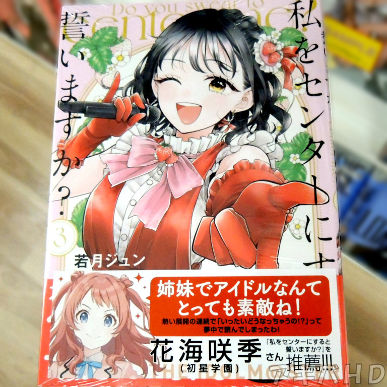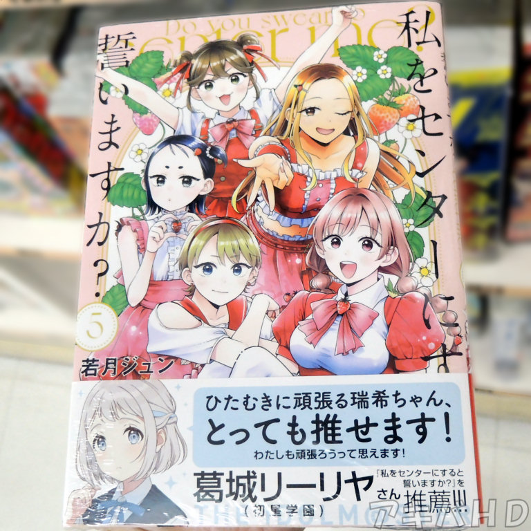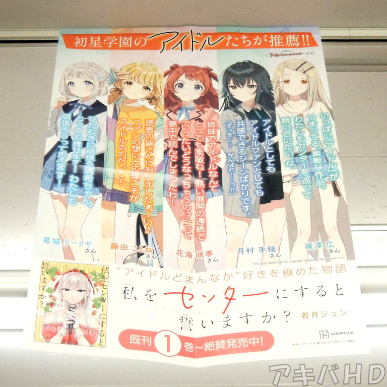「私をセンターにすると誓いますか?」5巻(漫画:まめ猫氏)が9月9日に発売。オビは、「葛城リーリヤさん推薦!!!」と共に推薦コメントが書かれてた他、アニメイトには「初星学園のアイドルたちが推薦!!」のポスターと販促POPがあった。